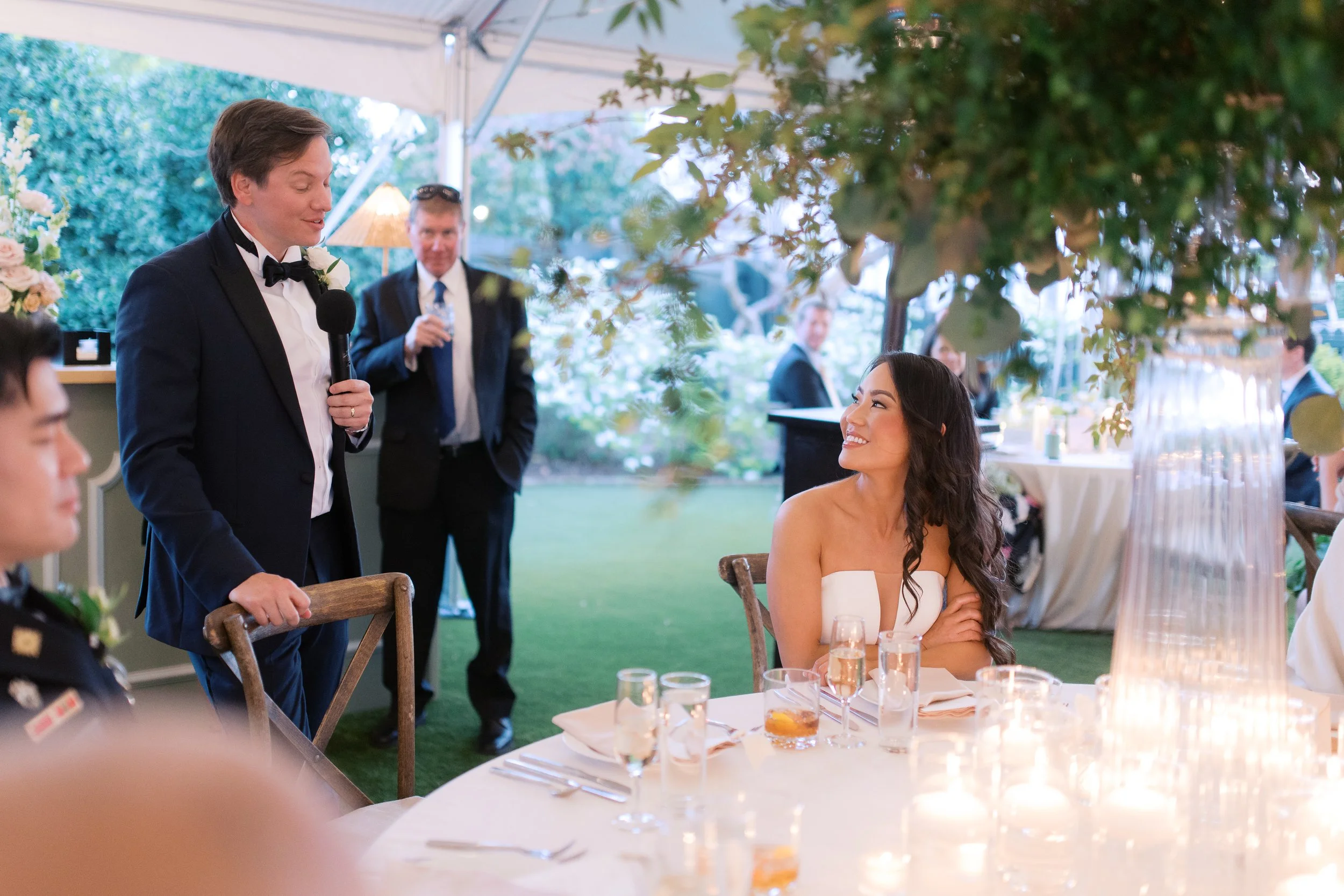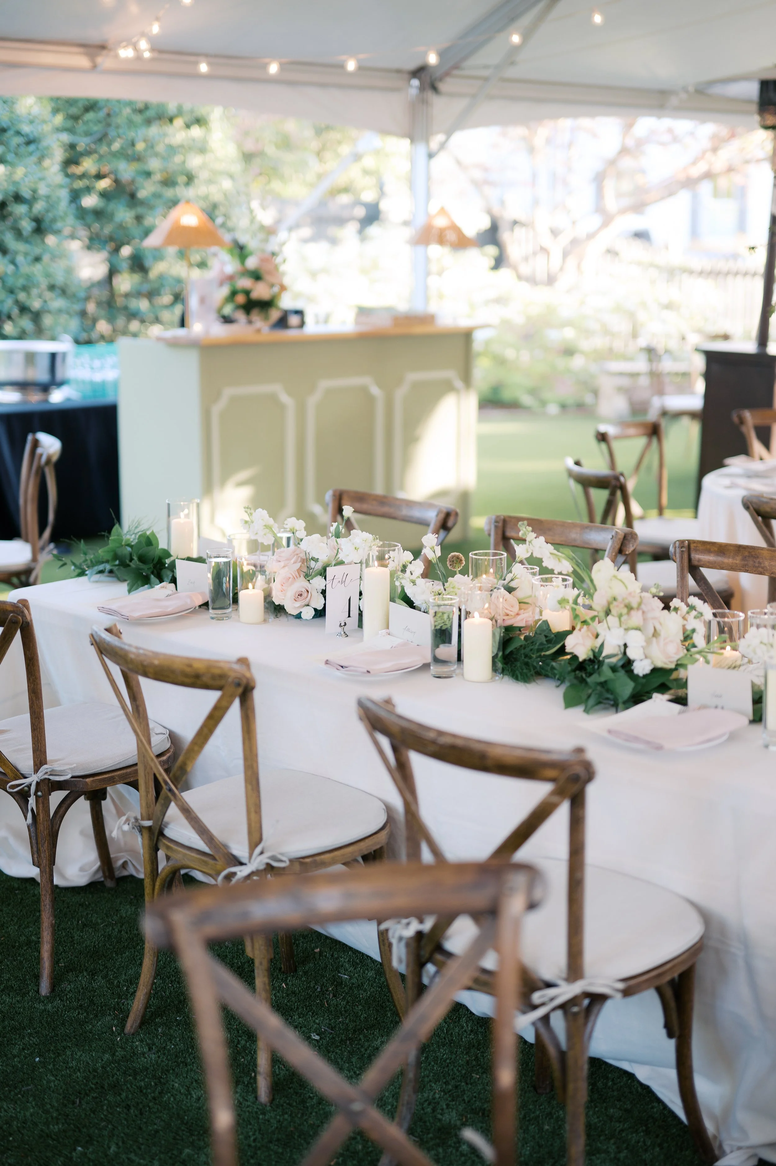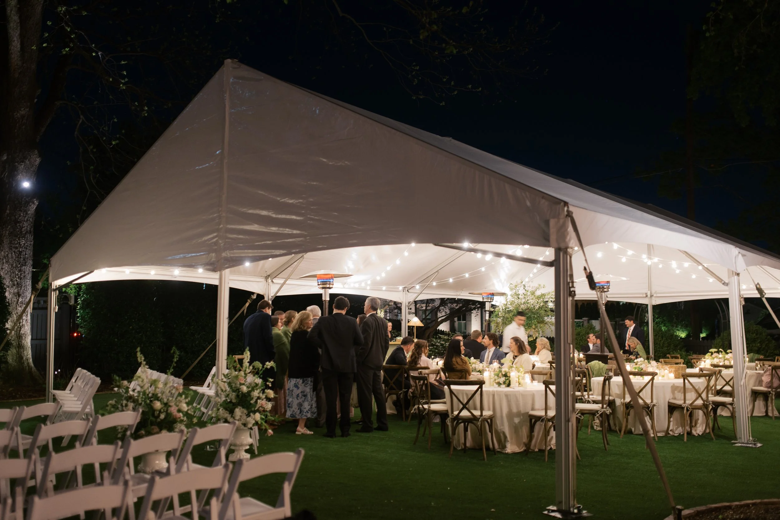 The custom bar, refined seating, and softly glowing tent lights came together to create an unforgettable setting beneath the canopy. Every element of this tented celebration was designed with intention—blending sophistication and warmth to create a night guests will always remember.