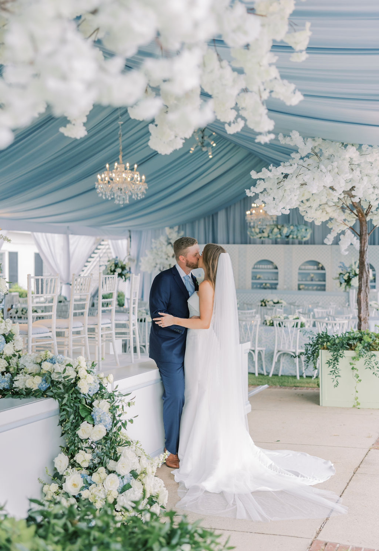 This tent became a world of its own, with soft fabric draping above and chandeliers casting a warm, romantic glow. Florals in gentle tones framed the space, while the dance floor carried the energy of the evening. It was a night that felt both effortless and unforgettable.