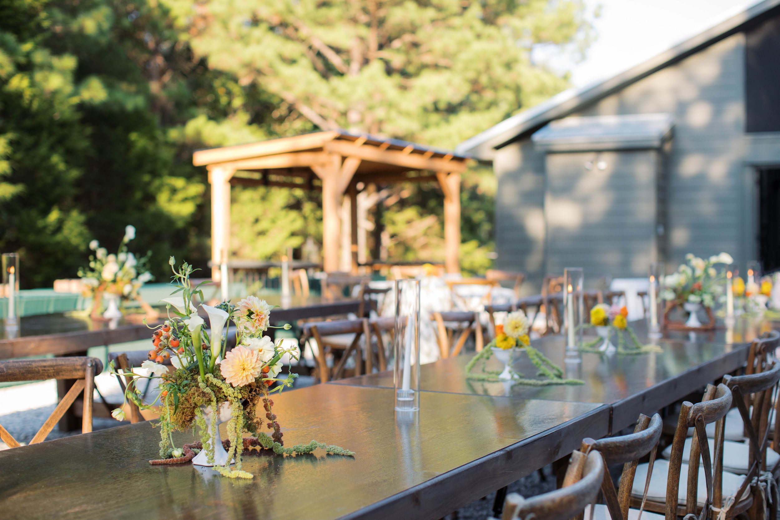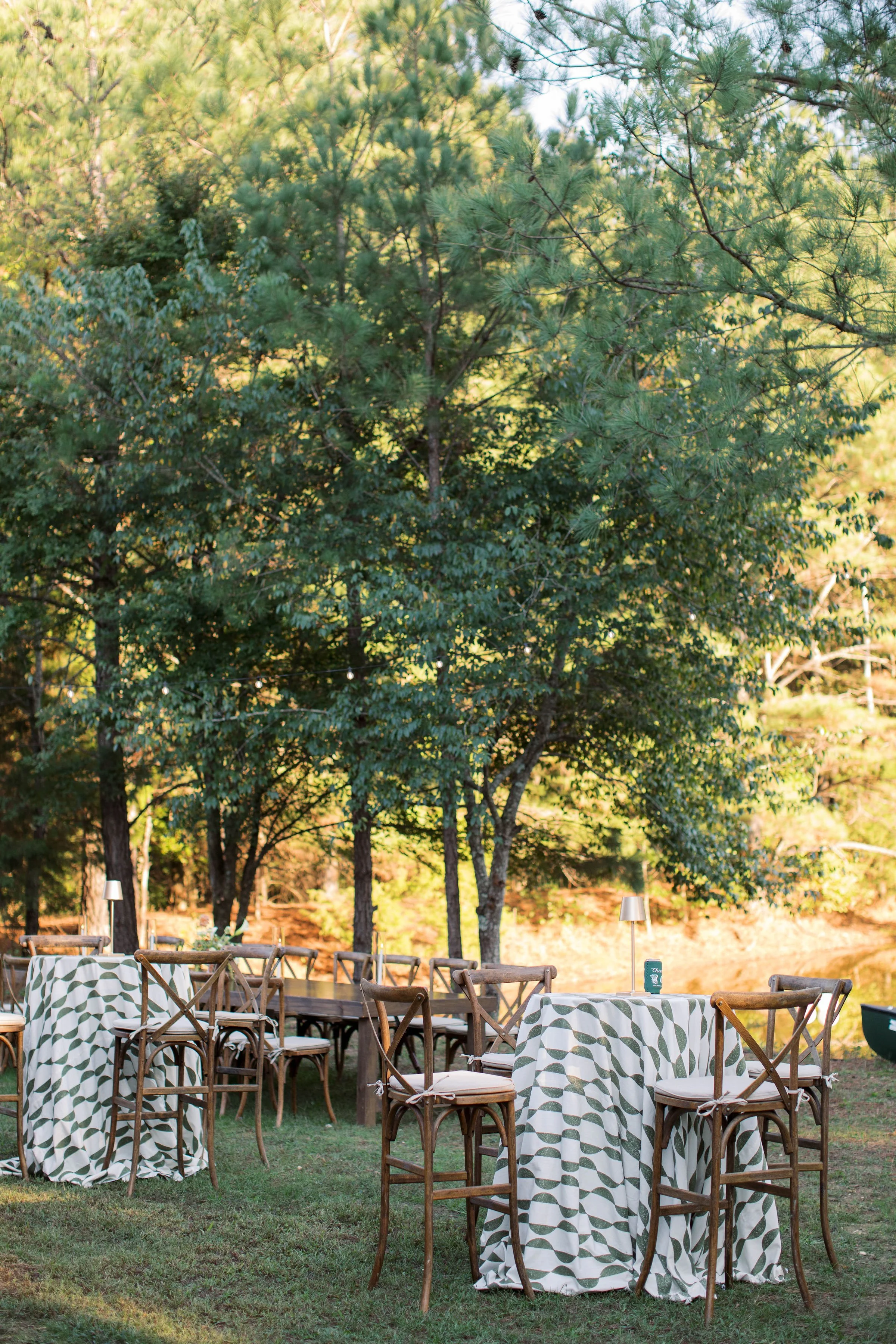 This outdoor wedding was magical. From the custom bar, soft lighting, intentional seating, & beautiful linens nothing could have made this more perfect!