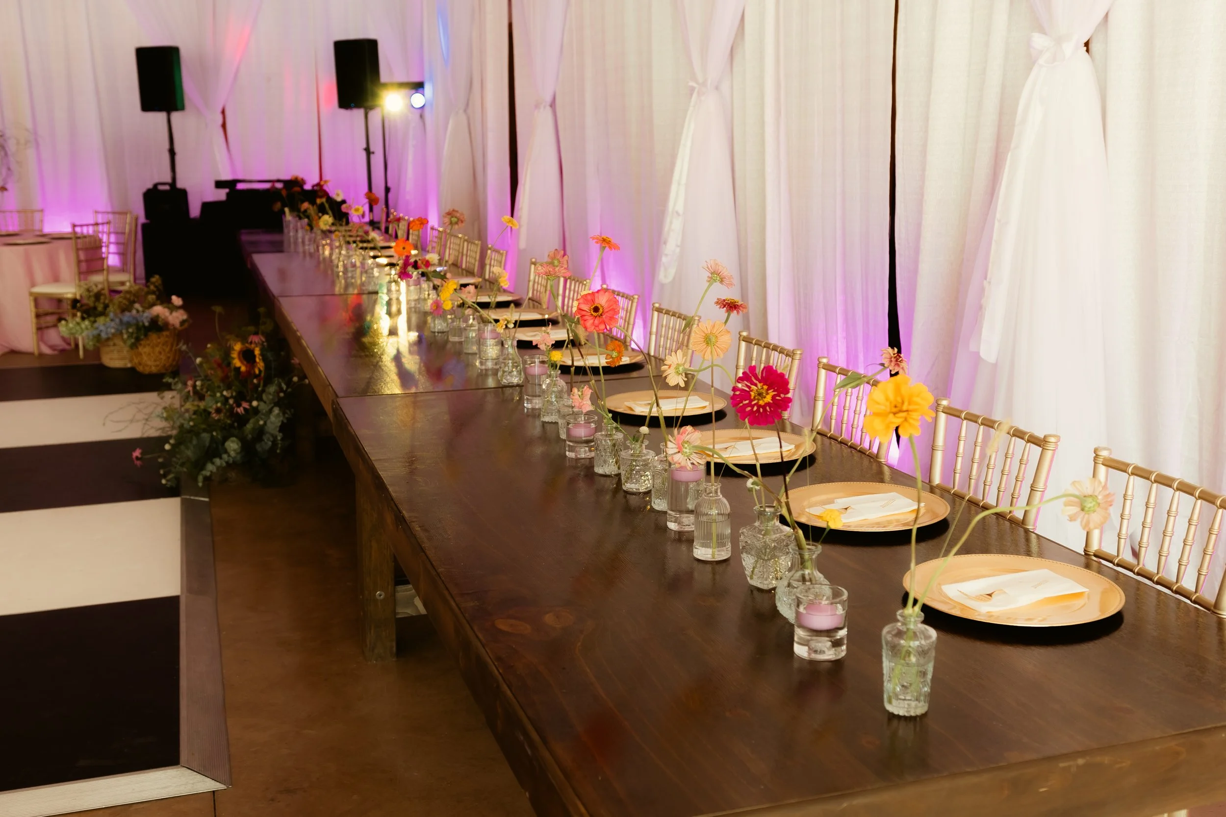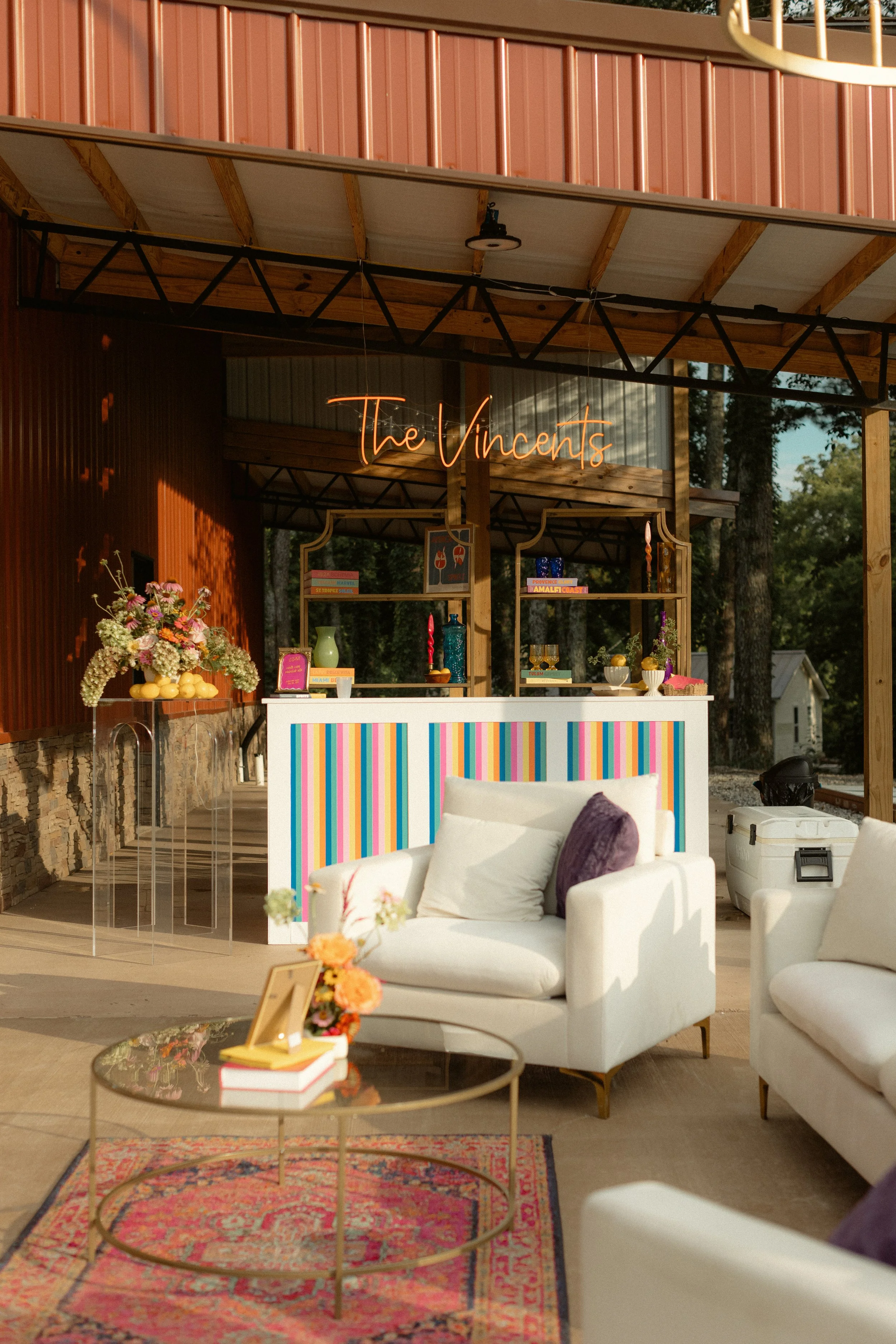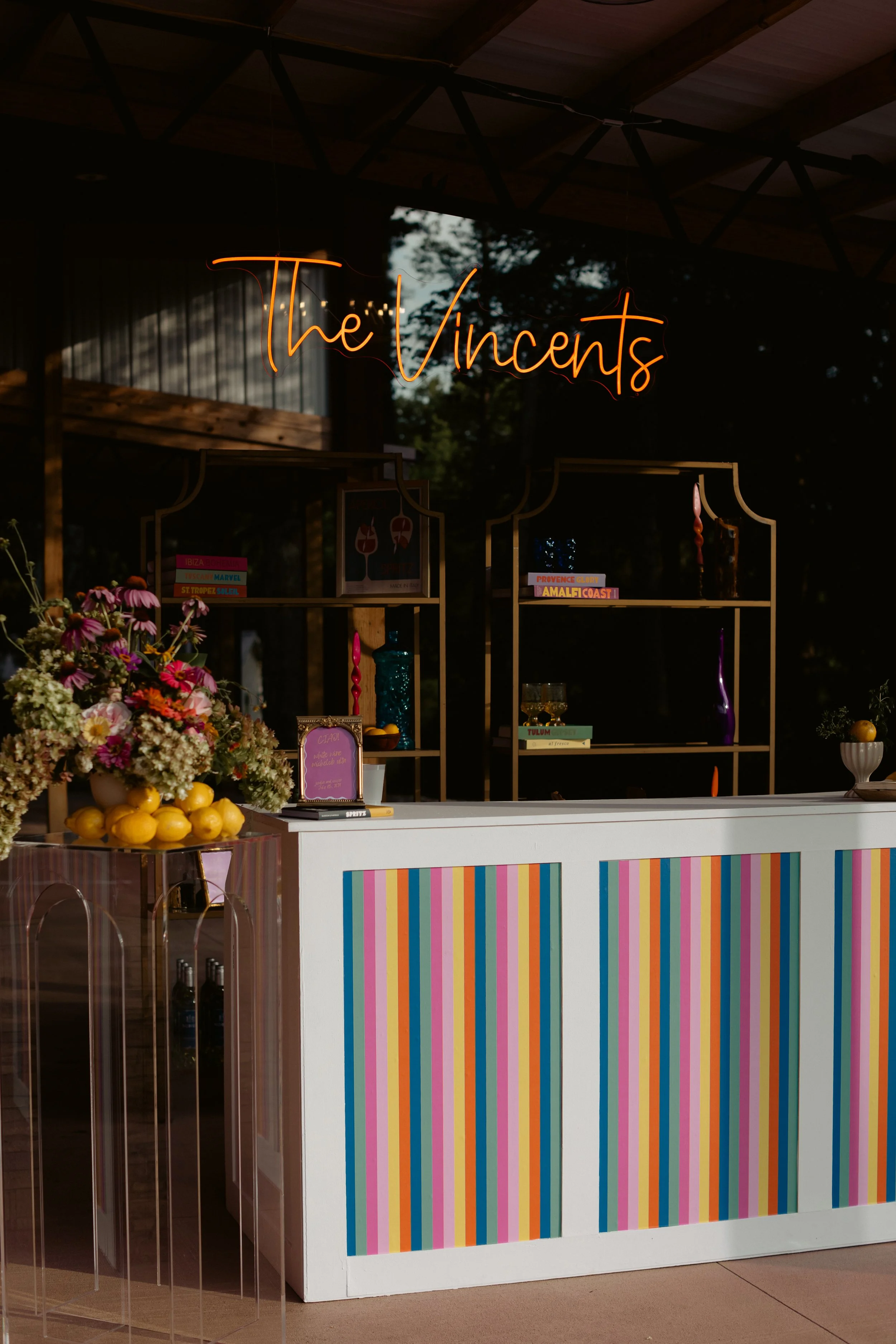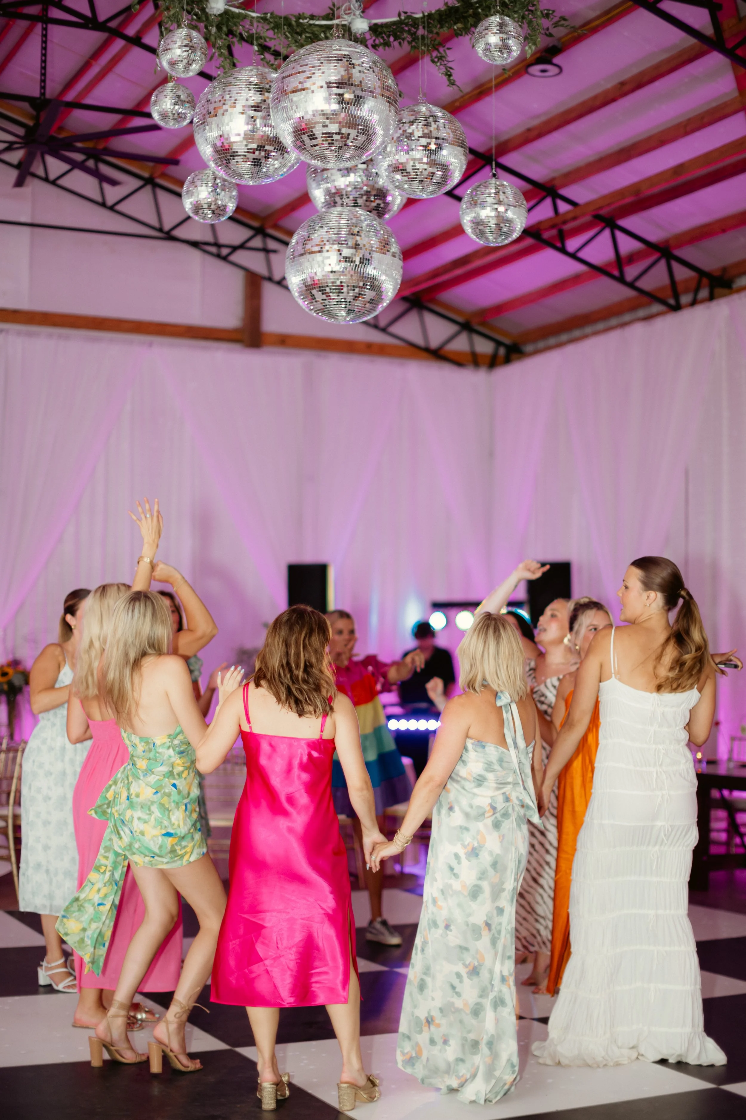 The color and love truly brought this entire wedding together. We love a good back yard wedding, especially when it is this fun! From the custom bar to the disco balls this night was full of love and color.